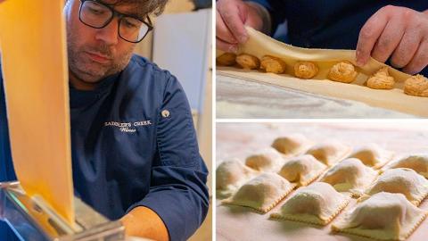 Ricotta & spinach tortello. 30mth parmigano reggiano cream, black truffle